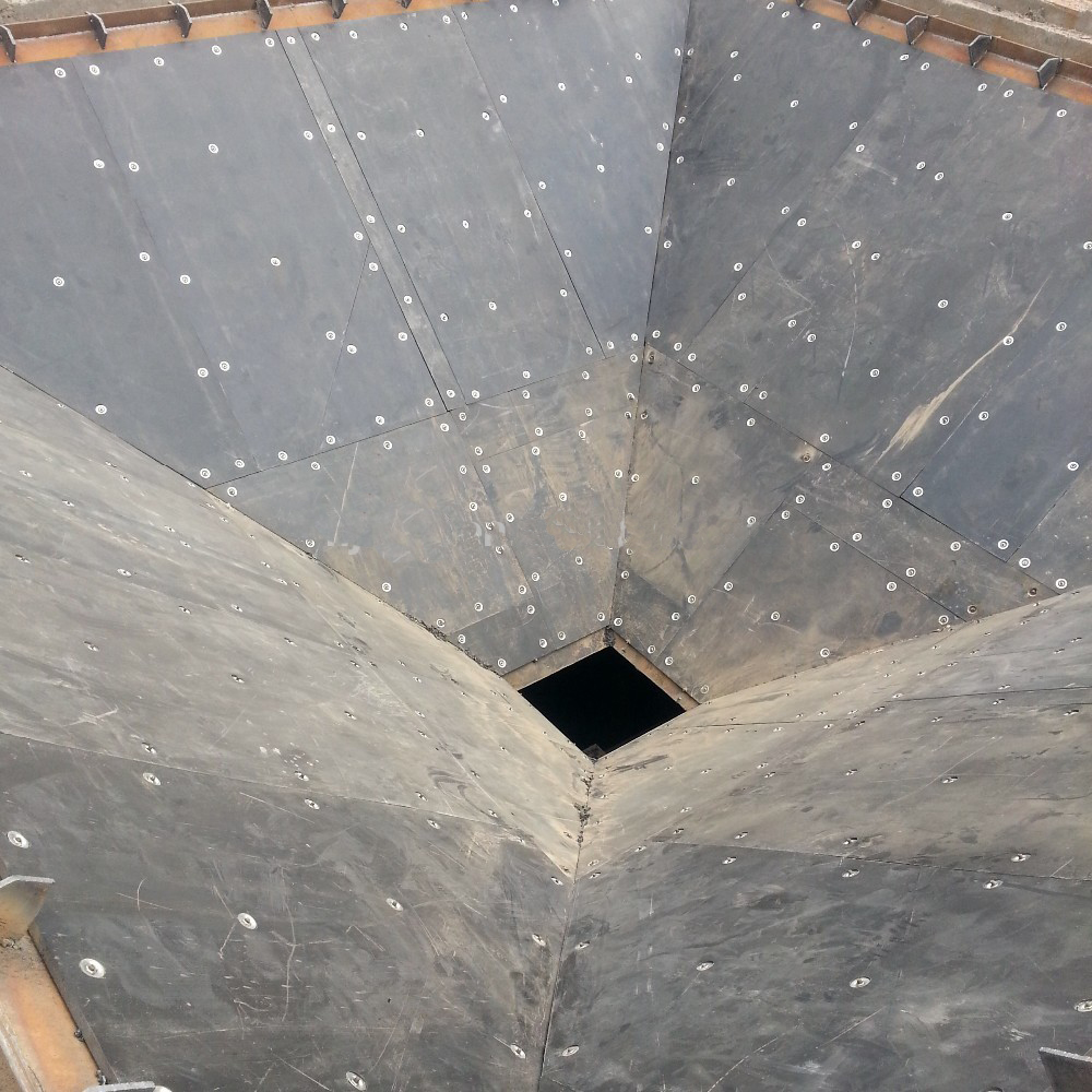 3、冶金行業(yè):精煤倉(cāng)、礦石料斗 抵御礦石顆粒的高頻沖擊。
